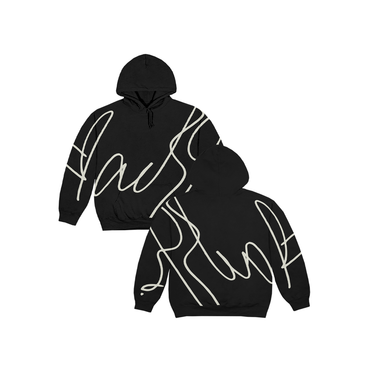 Allover Print Black Pullover Hoodie with white Adele signature.